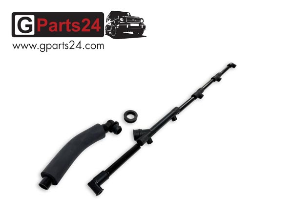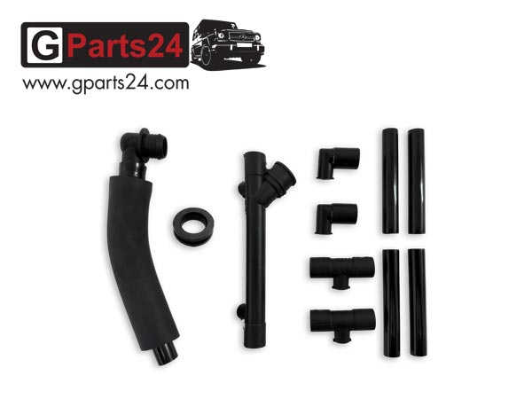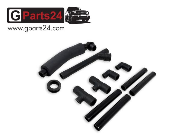 Mit dem G-Klasse Reparatursatz Kurbelgehäuseentlüftung OM603 lässt sich das System der Ölabscheidung komplett instand setzen. Der Repsatz für den 6-Zylinder OM603-Motor, (verbaut bei zivilen Fahrzeugen) besteht aus dem Entlüfterrohr/Saugrohr, drei Rohrleitungen und allen Formschläuchen. Diese sind auf dem „Rail“ über den Einspritzdüsen montiert.