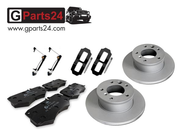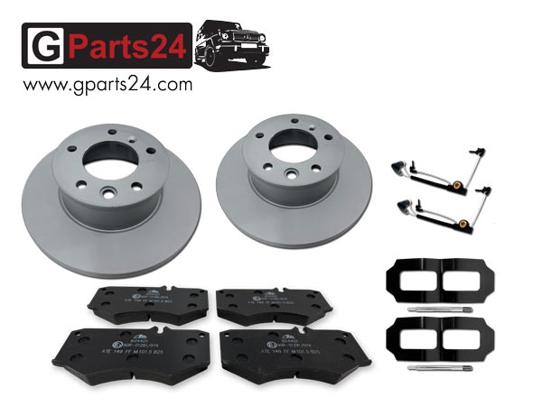 G-Klasse Reparatursatz Vorderradbremse | Bremsscheiben, Bremsbeläge, Verschleißsensoren, Haltefeder Belag